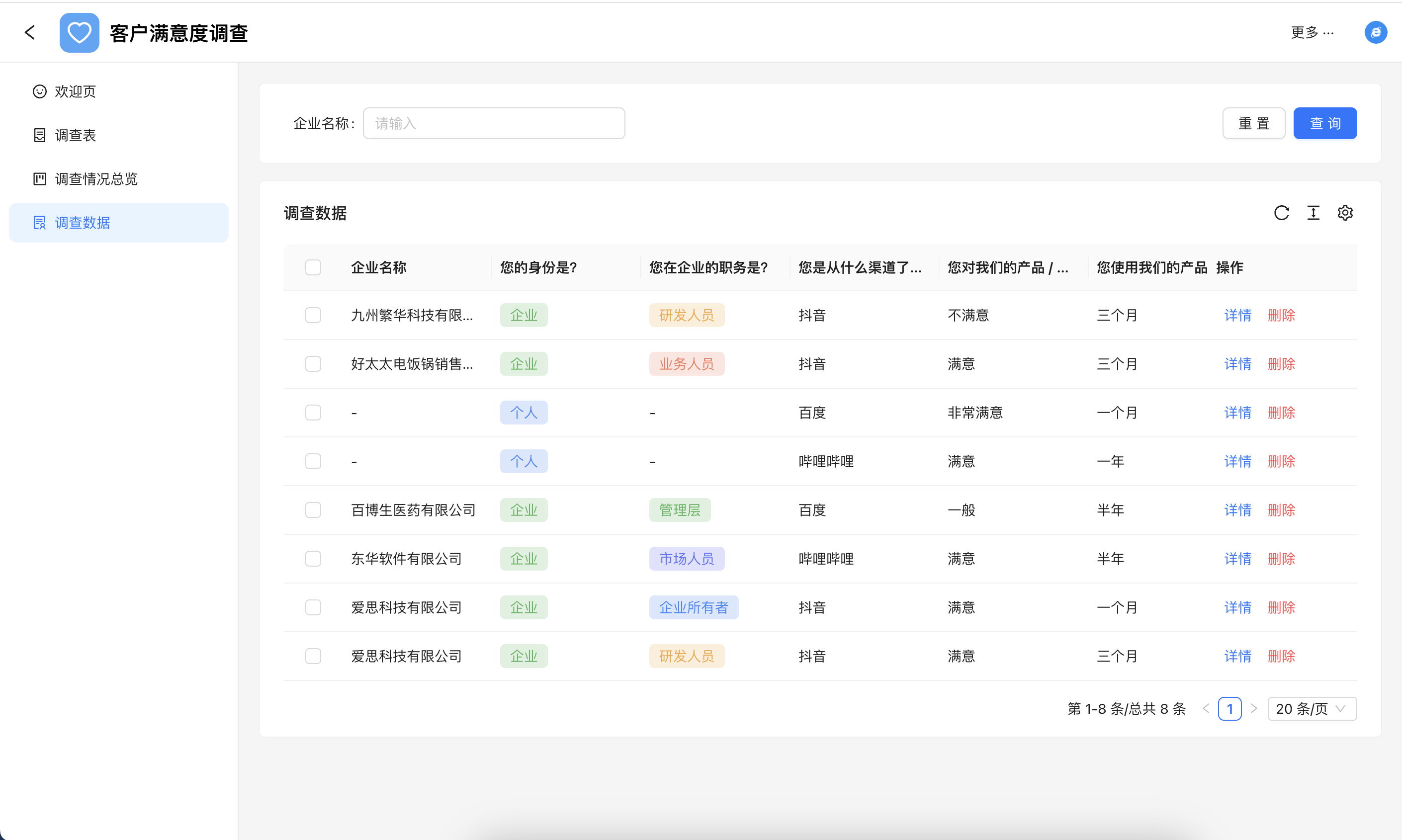 立即使用稀土智慧云客户满意度管理系统是一款用于收集、分析和改善客户反馈的软件。它包括调查问卷设计、反馈收集、数据分析和行动计划等功能。用户可以通过系统追踪客户满意度指标、识别问题点,并及时采取措施提升服务质量。客户满意度管理系统帮助企业更好地理解客户需求,增强客户忠诚度,提升品牌竞争力。
