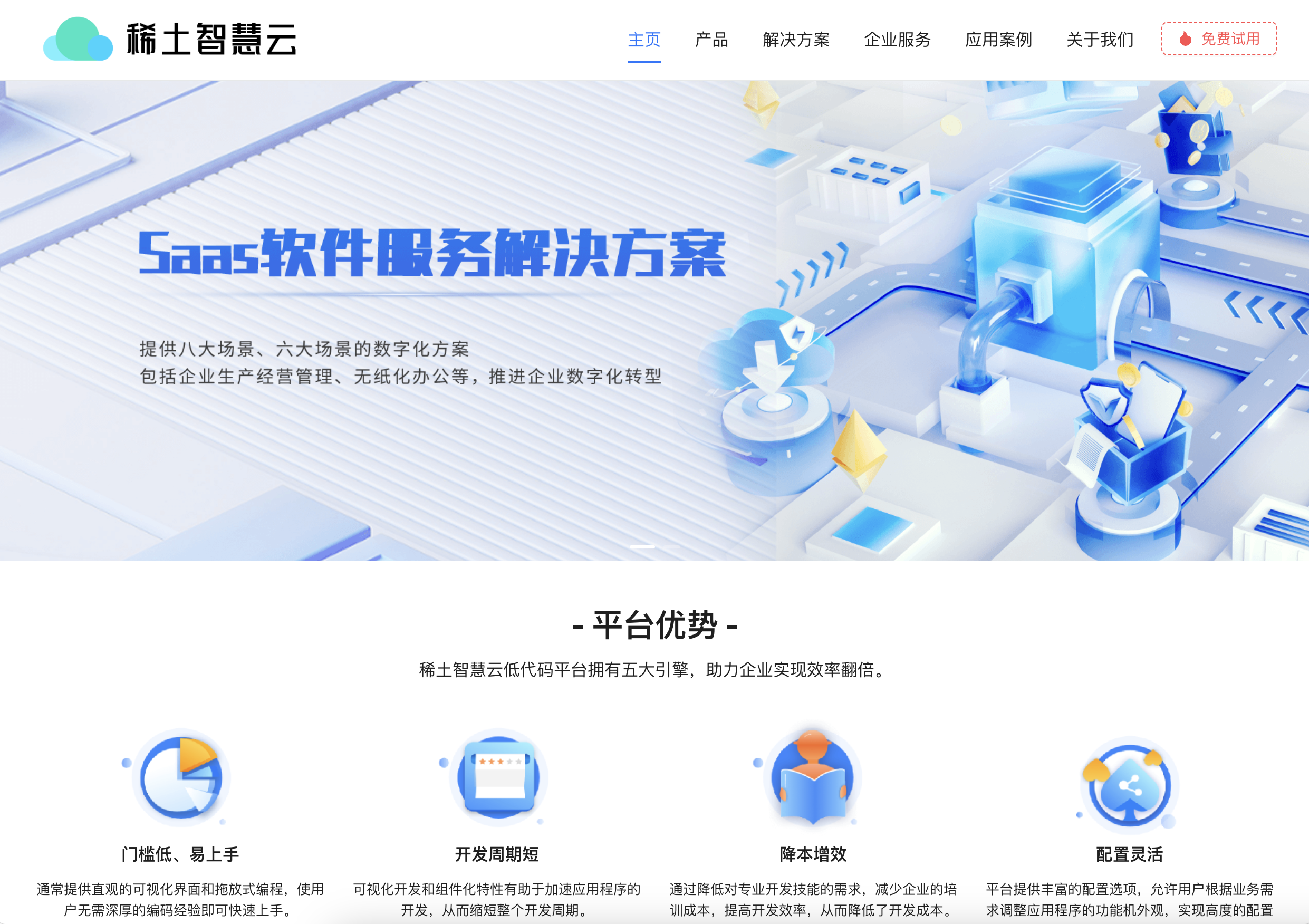 稀土智慧云官网是通过稀土智慧云低代码平台可视化引擎搭建的网站。依托稀土智慧云可视化引擎的强悍能力,我们得以将官方网站通过稀土智慧云完成。其可视化能力,表单能力大大减少了我们的工作量,对于后期维护则更加直观方便。