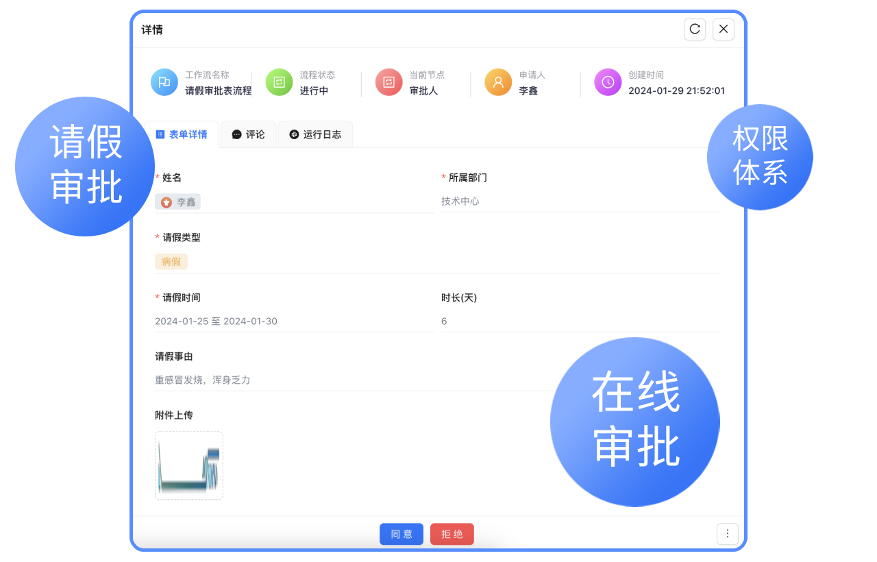 用户可以通过工作流引擎在线提交审批申请,无需额外的纸质文件,实现审批流程的数字化,简化了申请流程,提高了审批效率。