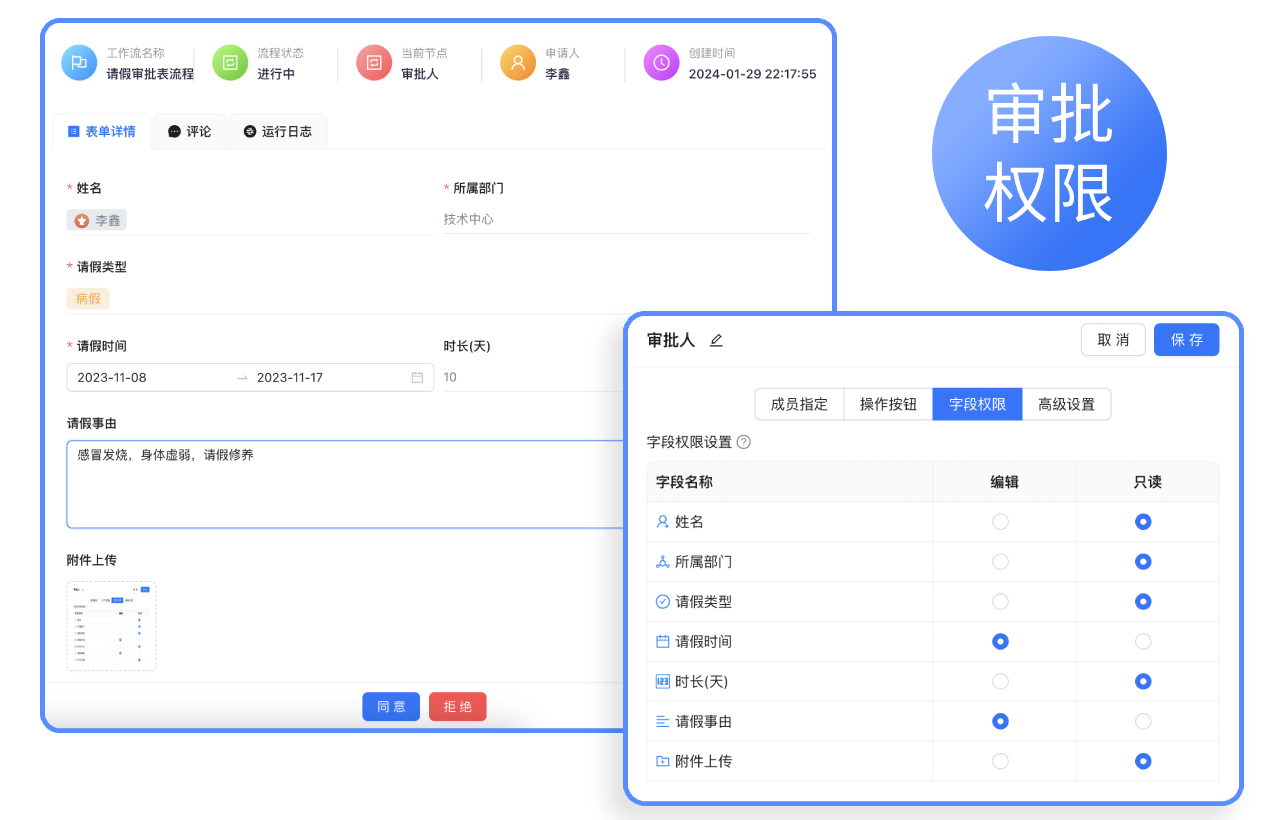 在工作流的不同节点,用户可以根据需要对不同字段的查看权限进行灵活控制。这意味着可以根据具体的审批流程设计,设定不同节点下对特定字段的查看权限,实现对数据的精细化管控。