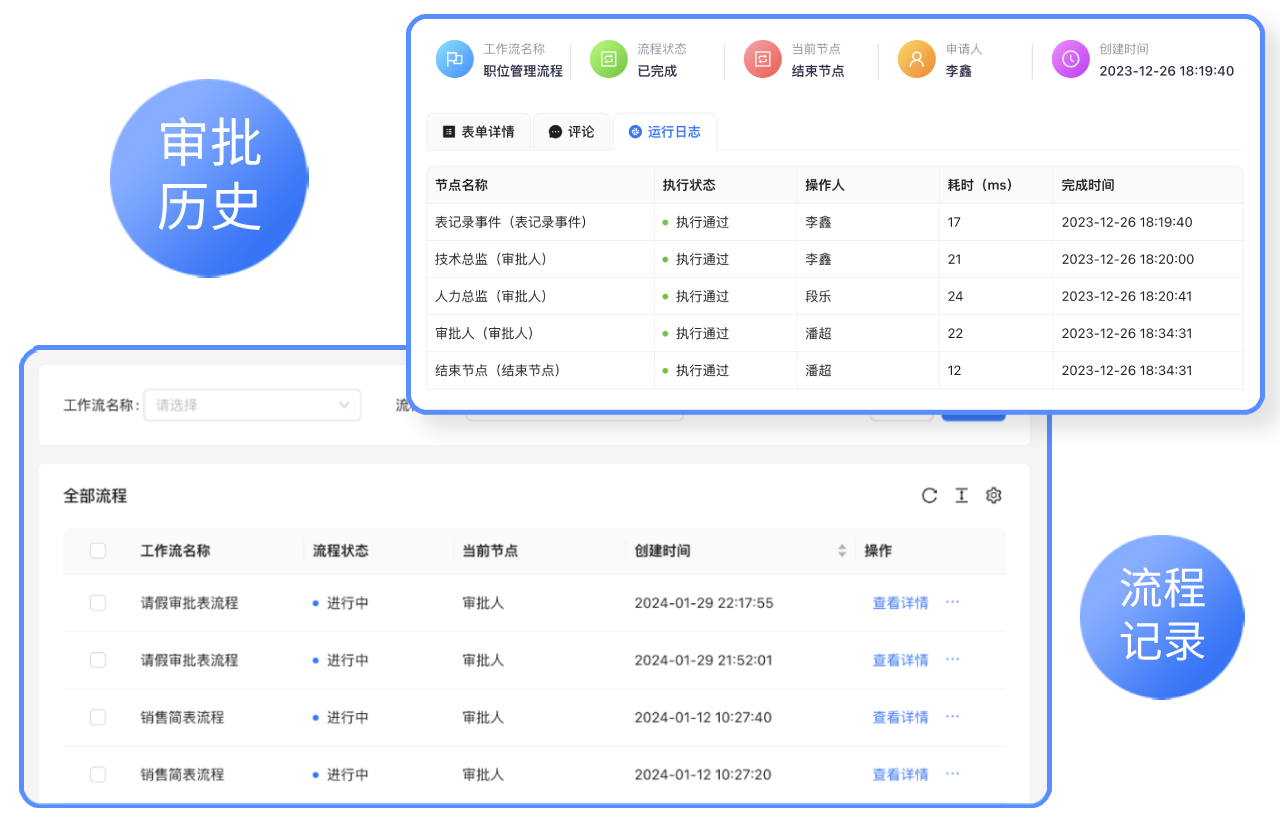 工作流引擎会长期保存审批历史记录,用户可以随时查阅审批流程的历史记录,了解每一次审批的详细信息,保障审批过程的透明和合规性。