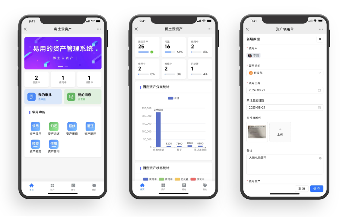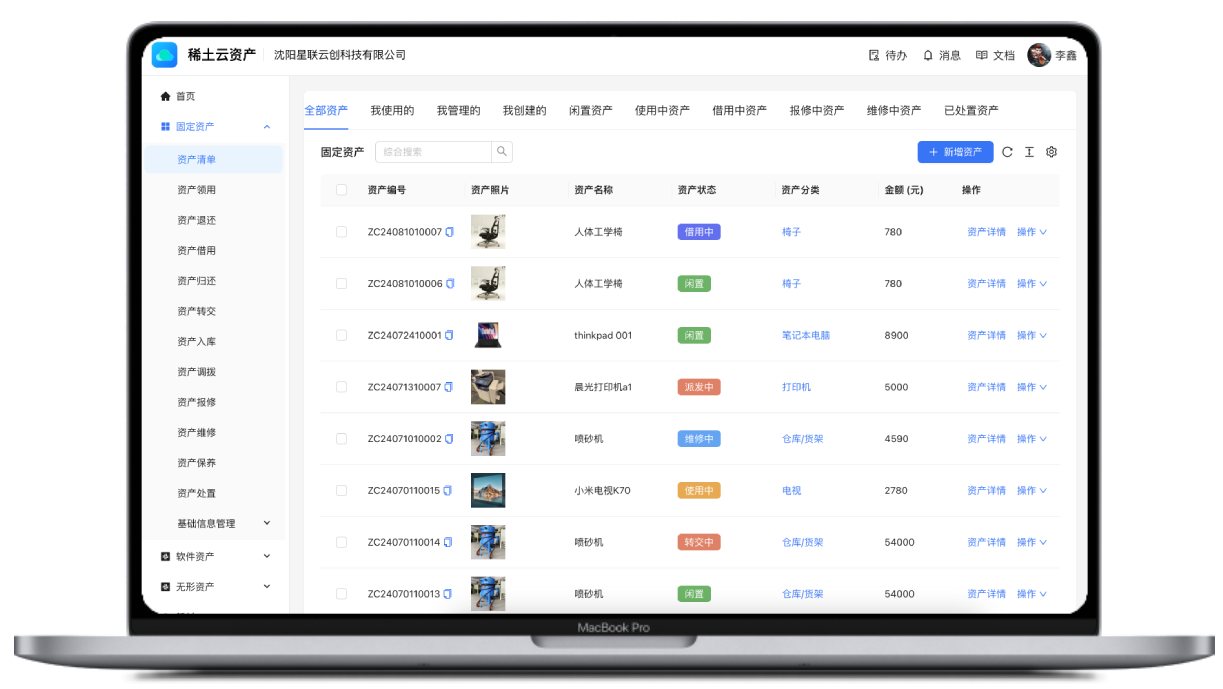 稀土云资产管理系统是一款专业的全生命周期资产数字化管理软件。功能包含:固定资产管理、无形资产管理、软件资产管理、以及耗材管理。