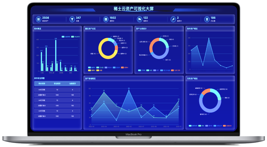 通过稀土云资产可视化大屏,企业能够全面掌握资产状况,实时了解资产配置和使用情况,实现精准管理和成本控制,让资产家底尽在掌握,提高运营效率。